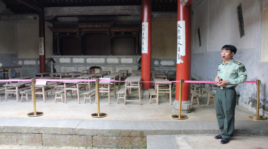 在松毛岭战役指挥部旧址观寿公祠,红军的后代、国家国防教育示范基地讲解员钟鸣,向大家讲述了当年人民群众送子当红军,踊跃参战、支前的感人事迹。